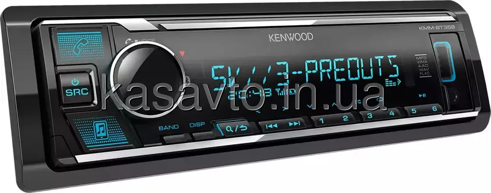 USB-ресивер Kenwood KMM-BT358 має передню панель, що знімається, оригінальний дизайн з мультикольоровим підсвічуванням кнопок. Висока вихідна потужність пристрою дозволяє отримати яскраве образне відтворення улюблених треків.